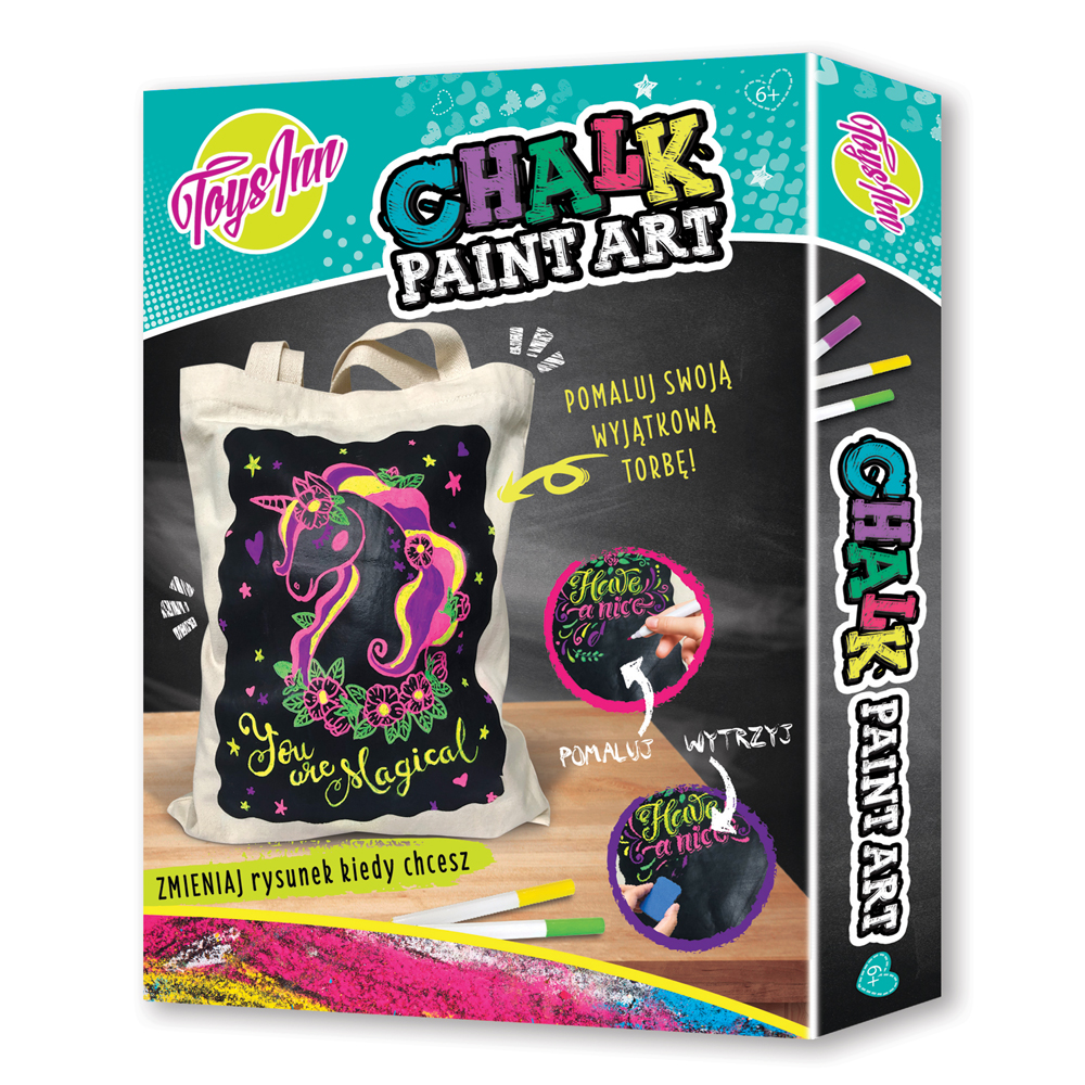 Zestaw jest idealnym prezentem dla wszystkich dziewczynek ceniących sobie oryginalność. Za pomocą kredowych markerów, każdego dnia możesz w inny sposób ozdobiać swoją torbę. Wystarczy na czarnym tle napisać lub narysować coś ciekawego. Zestaw zawiera: torbę płócienną typu shopper z czarnym, prostokątnym nadrukiem w formie tablicy, 4 markery kredowe, gąbkę.