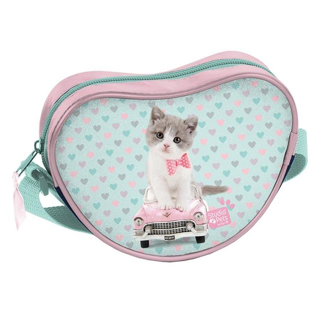 Torebka na ramię, jedna kieszeń zamykana na zamek, kształt serduszka, regulowany pasek. Ozdobne brokatowe dodatki na froncie.