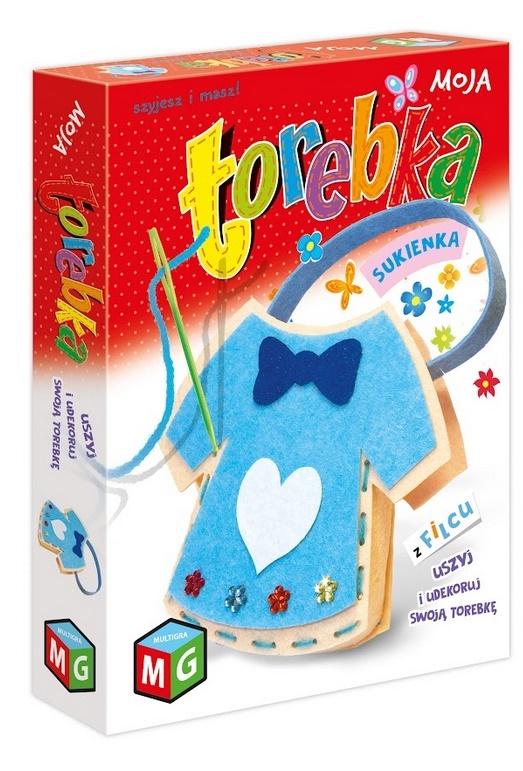 Moja Torebka to zestaw kreatywny do samodzielnego wykonania wymarzonej torebki, w którym znajdziemy wycięte już w odpowiedni kształt kawałki filcu, włóczkę, igłę oraz ozdobne elementy. Na szczególną uwagę zasługuje specjalna, gruba, plastikowa igła bezpieczna dla dzieci. Całość została spakowana w estetyczne, poręczne pudełko, które łatwo zmieścić i ustawić na półce. To nie jest tylko kolejna zabawka. Może służyć także jako element garderoby, prezent dla bliskich lub ozdoba pokoju.