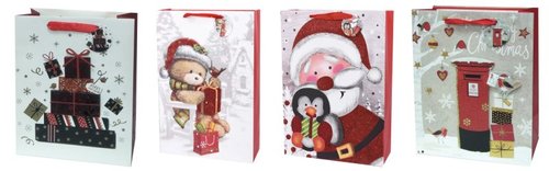 TOREBKA ŚWIĄTECZNA 3D PIONOWA ŚREDNIA mix 4 wzorów - 26X32X12, pakowana w zgrzewkę po 12 sztuk
