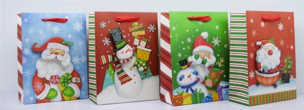 Opakowanie Torebka Świąteczna 3D pionowa duża Mikołaj mix