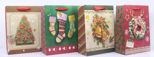 Torebka Świąteczna 3D Pionowa Mała 12 Sztuk mix wzorów 17,5X23,5X8