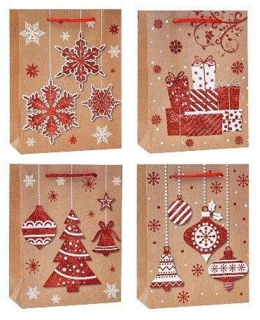 Torebka świąteczna z brokatem 18x24x8cm, motyw kraftowy.