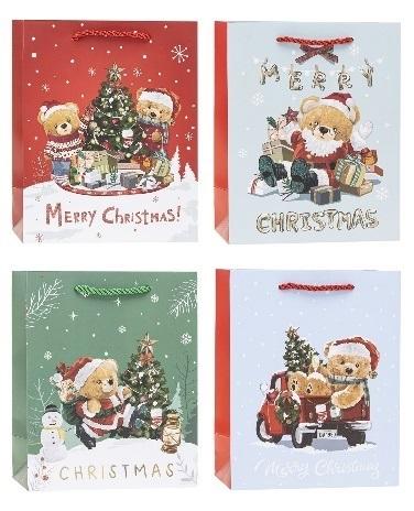 Torebka świąteczna z brokatem 26x32x10cm, motyw z Misiem.