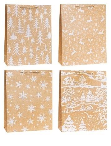 Torebka świąteczna z brokatem 26x32x10cm, motyw kraftowy.
