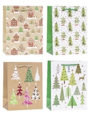 Opakowanie Torebka świąteczna Drzewka 26x32x10cm mix ROZETTE