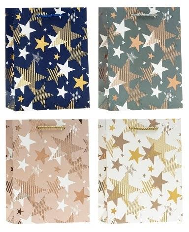Torebka świąteczna 18x24x8cm, motyw z Gwiazdkami, produkt wysyłany losowo, cena za 1 sztukę