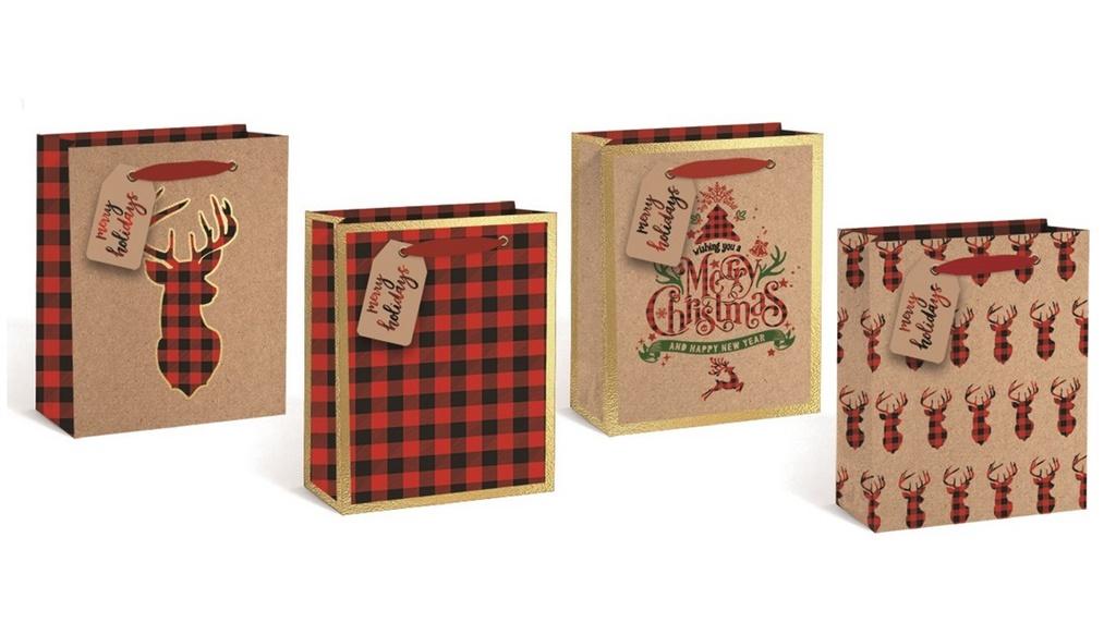 Torebka świąteczna KR 2650 M o wymiarach 26*32*12.5 cm, tłoczona. Mix wzorów, towar wysyłany losowo.