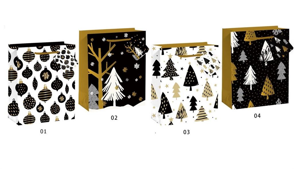 Torebka świąteczna KR 2701 M o wymiarach 26*32*12.5 cm, tłoczona . Mix wzorów, towar wysyłany losowo.