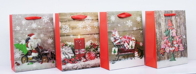 Torebka Świąteczna Pionowa Śr Św Mikołaj 12 sztuk