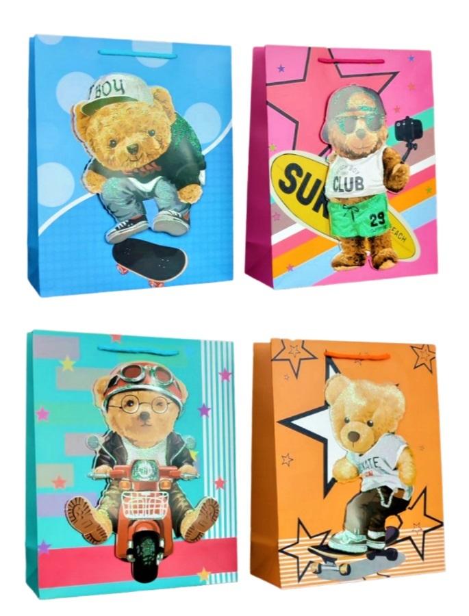 Torebka prezentowa L Miś 3D brokat