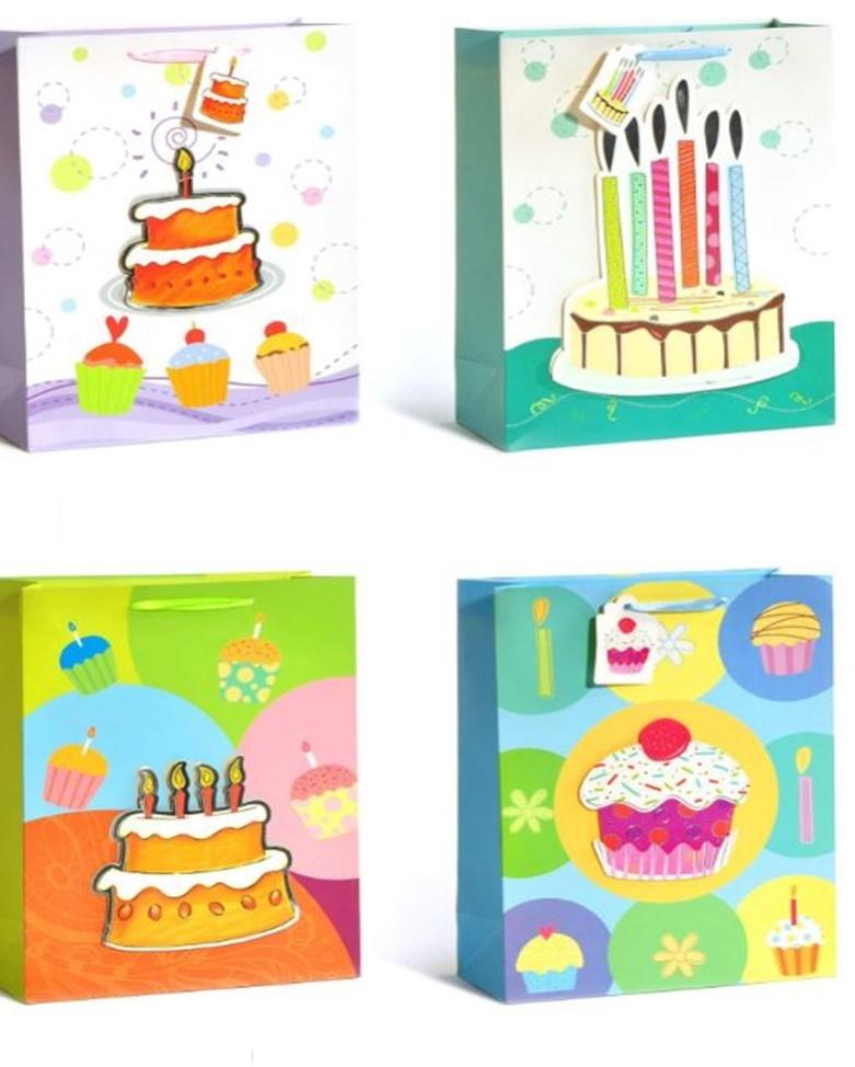 Torebka prezentowa z naklejanymi elementami z efektem 3D o wymiarach 26 x 32 x 12,5 cm. Wzór wysyłany losowo.