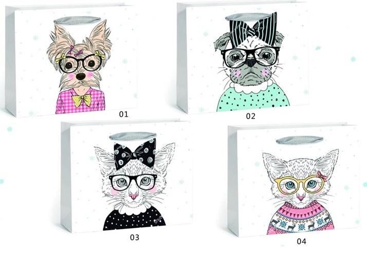 Torebka prezentowa, lakierowana UV, błyszcząca powłoka. Mix wzorów, wzór wysyłany losowo.