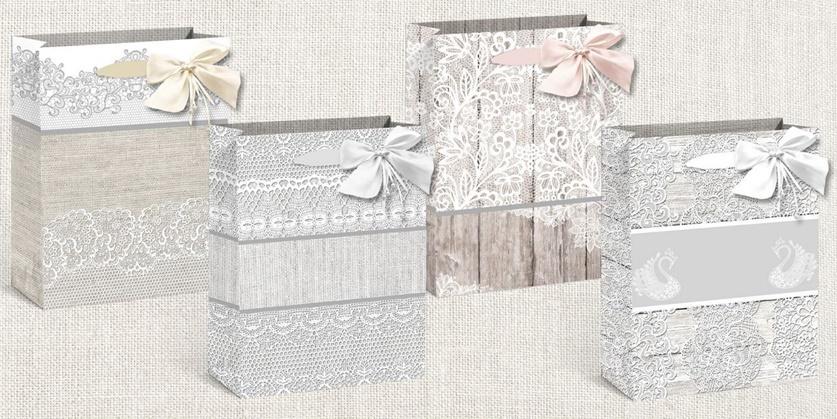Torebka prezentowa, lakierowanie UV, błyszcząca powłoka. Mix wzorów, wzór wysyłany losowo.