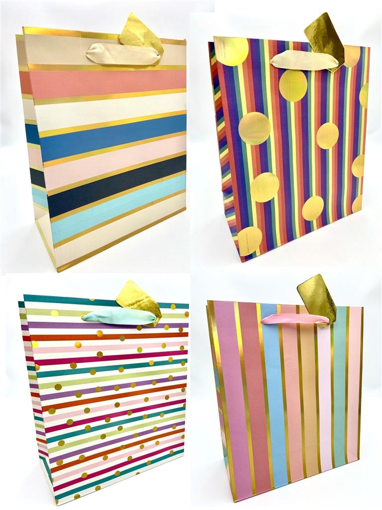 Torebka upominkowa KR 8215 M A4. Mix - motyw kropki, paski. Dodatki świecące.