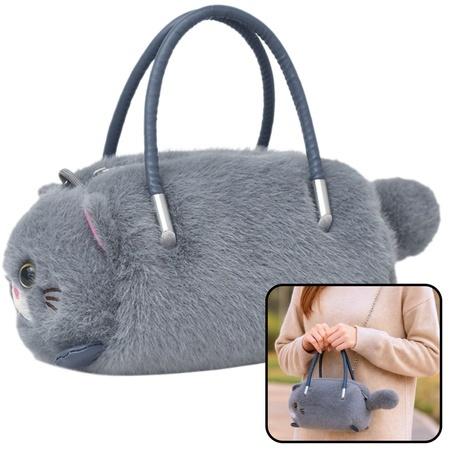 PLUSZOWA TOREBKA W KSZTAŁCIE KOTKA Z UCHWYTAMI I ŁAŃCUSZKIEM