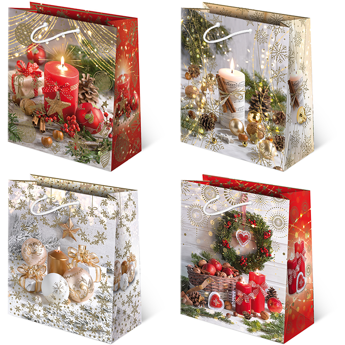Klasyczne laminowane torebki Wymiary: 20 x 24 x 11 cm (szer. x wys. x dno).