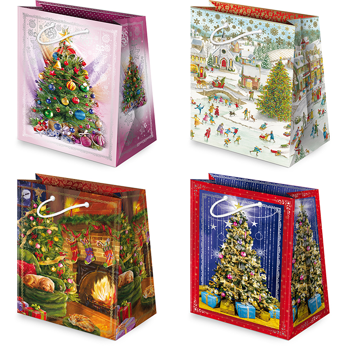 Klasyczne laminowane torebki z szerokim dnem na duże prezenty.