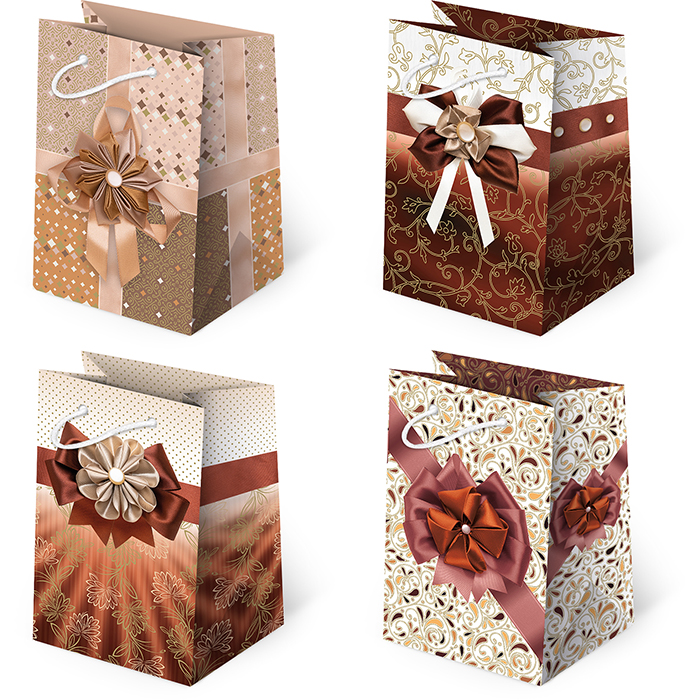 Torebki ozdobne T5-99 Kokardy brązowe 10 sztuk