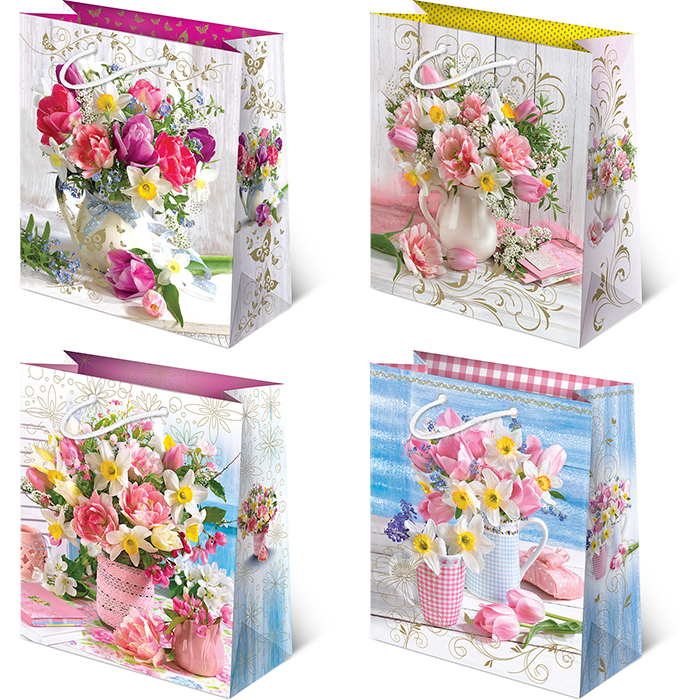 Torebki ozdobne XL-118 Kwiaty jasne 10 sztuk
