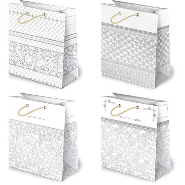 Torebki ozdobne XL set 12 białe grafika