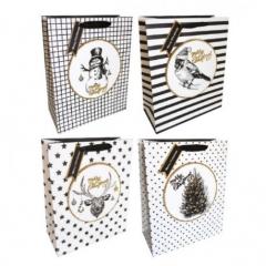 Opakowanie Torebki prezentowe 26x32 biało-czarne świąteczne 12szt