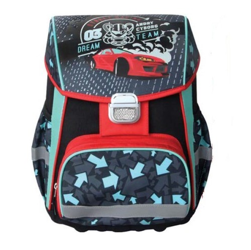Szkolny anatomiczny tornister Car Racing Posiada profilowane plecy i elementy odblaskowe.