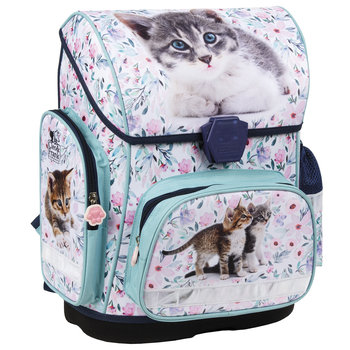 Tornister szkolny, Cleo i Frank Funkcjonalność 1 pojemna komora z klapą zamykaną na klamrę 1 przednia kieszeń na zamek 1 kieszeń boczna na zamek 1 kieszeń boczna z siatki Komfort i bezpieczeństwo profilowane, wyściełane i regulowane szelki uchwyt do przenoszenia elementy odblaskowe Wymiary wysokość: 36 cm szerokość: 28 cm głębokość: 17 cm