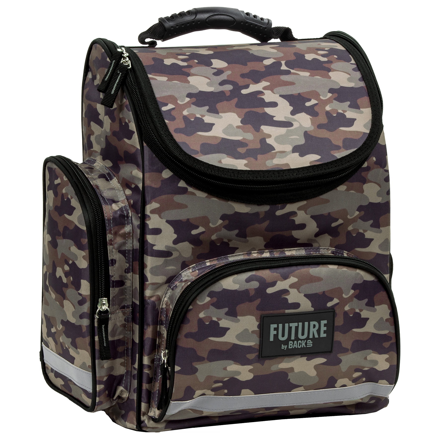 Funkcjonalny, lekki tornister szkolny. Pokrywa tornistra zamykana na zamek, wewnątrz etykieta na dane adresowe. Ergonomiczny tył, miękkie wyściełane szelki, trzy kieszenie zewnętrzne. Dno wykonane z wodoodpornego tworzywa zabezpieczającego przed zabrudzeniem, zamakaniem. Ze wszystkich 4 stron tornistra - taśmy odblaskowe.