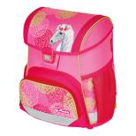 Ergonomicznie ukształtowane i wykonane z przepuszczającego powietrze plecy tornistra, miękko wyściełane szelki, łatwe zapinanie za pomocą klamry ze światełkiem odblaskowym, dwie otwarte boczne kieszenie ze ściągaczem, przednia kieszeń zapinana na zamek, wewnętrzna przegroda organizująca przestrzeń tornistra, materiał łatwy do czyszczenia, plastikowa kieszonka z planem lekcji na wewnętrznej stronie górnej klapy, stabilna plastikowa podstawa, materiał odblaskowy na przedniej i bocznych kieszeniach oraz na szelkach.