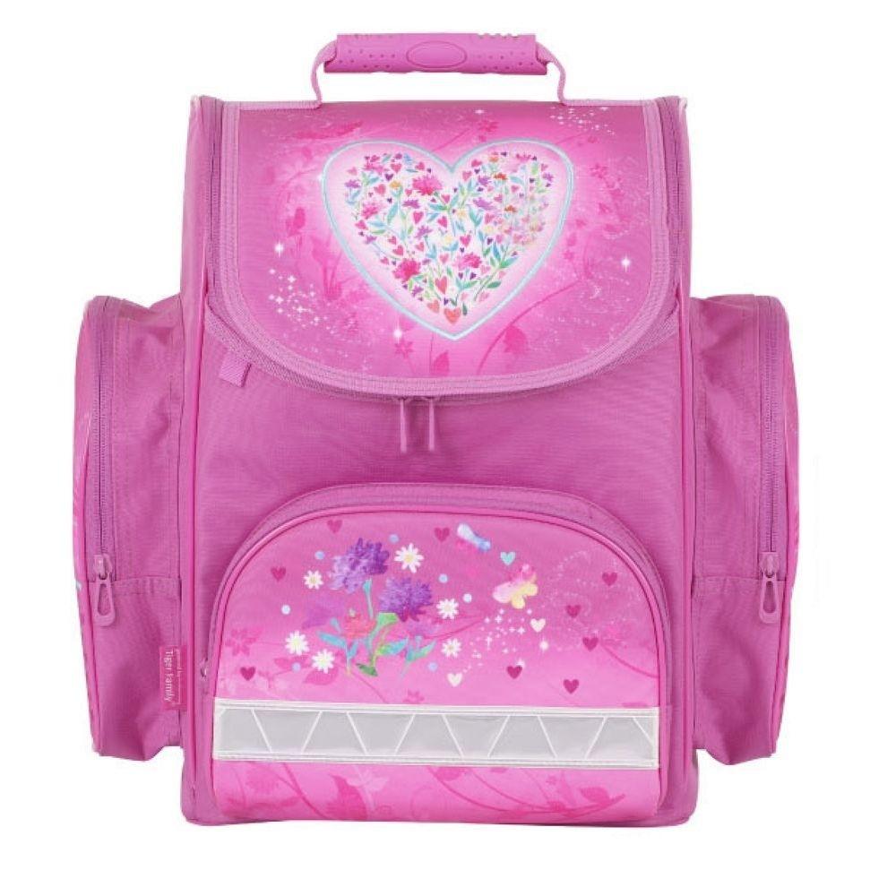 - jednokomorowy z przegrodą, o kasetonowej konstrukcji - z wytrzymałego materiału, niewchłaniającego wody - bardzo lekki - tylko 990 g. - kieszenie i główna komora zapinane na zamek błyskawiczny - profilowane plecy wykonane z wielowartswowej pianki pokrytej siatką - rączka do przenoszenia, haczyk do zawieszania oraz dodatkowe haczyki na szelkach - dno wykonane z wodoodpornego i antypoślizgowyego materiału - elementy odblaskowe z każdej strony tornistra ( na kieszczeniach: przedniej i bocznych oraz na szelkach) - z brokatową aplikacją na klapie - uchwyt umożliwiający zawieszenie breloczka bądź innej ozdoby na przodzie tornistra 380 mm 340 mm
