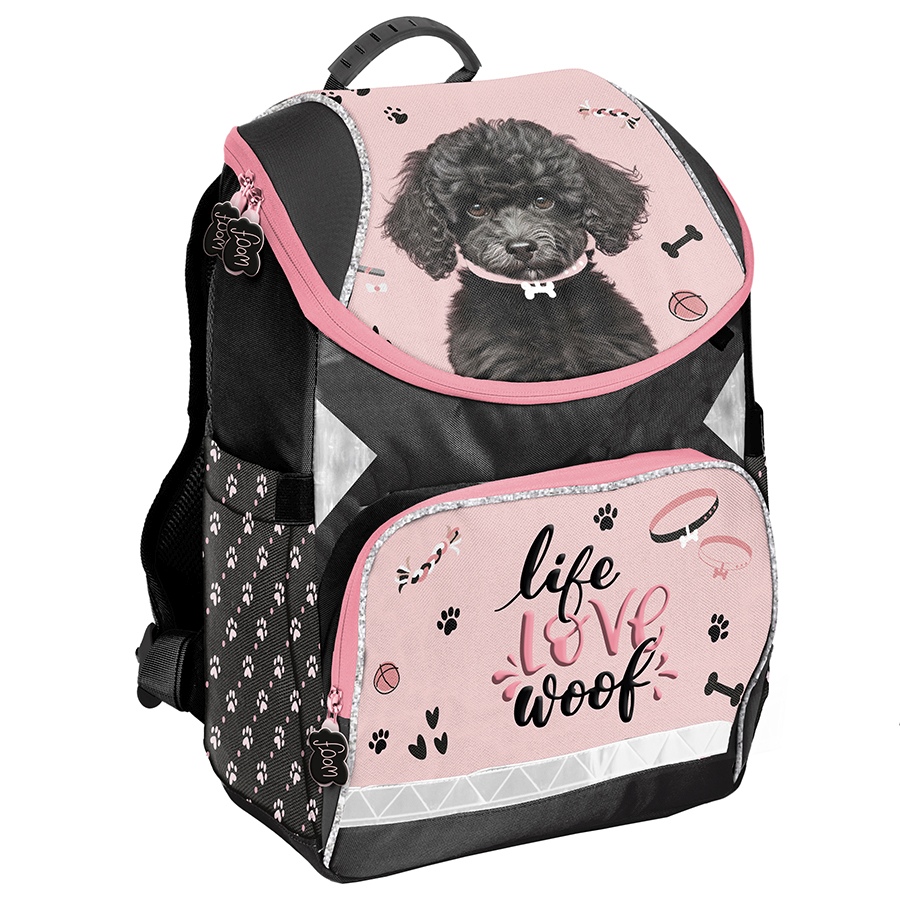 Wyjątkowo lekki tornister szkolny (tylko 850g). W głównej komorze wewnętrzna przegroda, dodatkowo kieszonka z siatki oraz przeźroczysta kieszeń na wizytówkę lub plan lekcji. Plecy ergonomiczne,pokryte siatką, usztywniane i profilowane z systemem wentylacji.