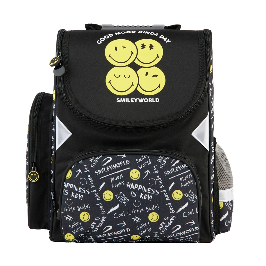 W głównej komorze wewnętrzna przegroda, dodatkowo kieszonka z siatki oraz przeźroczysta kieszeń na wizytówkę lub plan lekcji.
