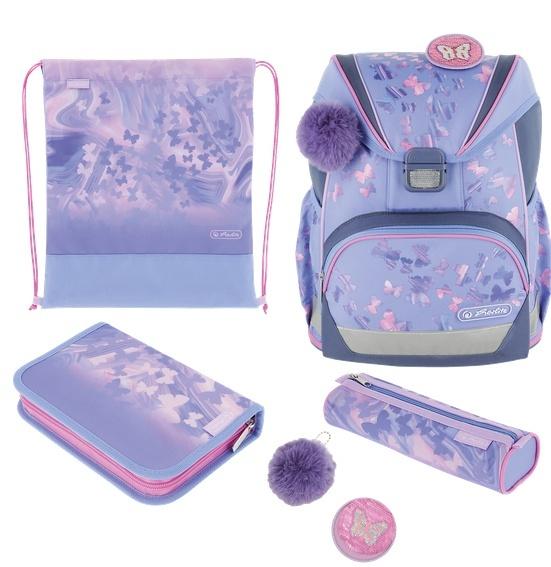 Tornister Herlitz UltraLight to wyjątkowo lekki model. Dzięki miękkiemu korpusowi zamykanemu na ściągany sznurek tornister zapewnia szybką regulację objętości. Waży bardzo niewiele bo niecałe 750-800 gramów. Dzięki ergonomicznie ukształtowanym plecom z regulowanymi szelkami i pasem piersiowym umożliwia dopasowanie wysokości. Model ten zapewnia wysoki komfort noszenia, dostosowując się idealnie do pleców dziecka. Co szczególnie ważne w drodze do szkoły, materiał odblaskowy w przedniej części, po bokach oraz na szelkach i dodatkowy odblask na klamrze zapewniają szybką widoczność na drodze. Wiele radości dają dwie wymienne aplikacje na klapę, które dziecko może wymienić, kiedy tylko zechce.