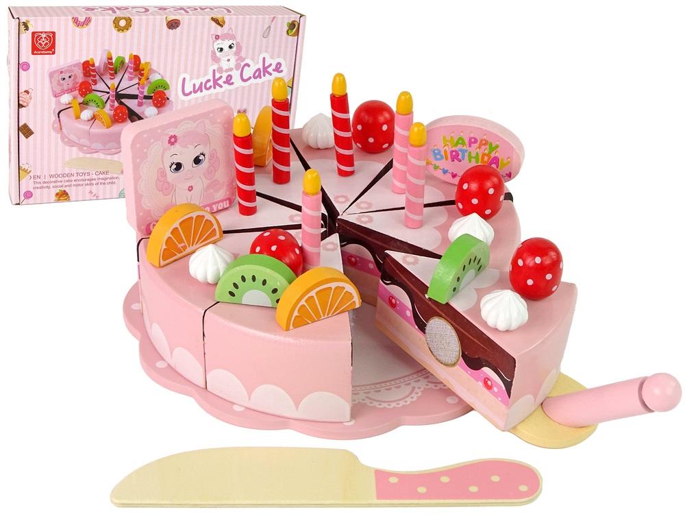 Drewniany Tort Na Rzepy Dekoracja Akcesoria Owoce Urządź wspaniałe przyjęcie urodzinowe i zaproś przyjaciół do wspólnej zabawy! Zestaw złożony ze słodkości sprawi, że zabawa, na którym goszczą zarówno domownicy, jak i lalki czy misie, będzie fenomenalna. To doskonałe ćwiczenie zdolności manualnych najmłodszych, a ponadto idealny trening przed nauką krojenia prawdziwym nożem. Samodzielne dekorowanie daje to nieograniczone możliwości kreatywnej zabawy godzinami. Tort można pokroić, a następnie na nowo połączyć za pomocą rzepów. Wszystkie elementy dekoracyjne działają na zasadzie wciskania. Na końcu każdego elementu znajdują się wykałaczki, a w torcie odpowiednie otwory. Zestaw zawiera: - tort - elementy dekoracyjne, które można umieścić na torcie (ozdoby świąteczne, świeczki) - talerz - łopatka - nóż Wymiary tortu: średnica 17 cm Wymiary dekoracji: około 4 cm x 3 cm Wymiary opakowania: 32 cm x 21 cm x 7 cm Zabawka przeznaczona dla dzieci powyżej 3 roku życia. Zgodne z normą EN71 i certyfikatem CE.