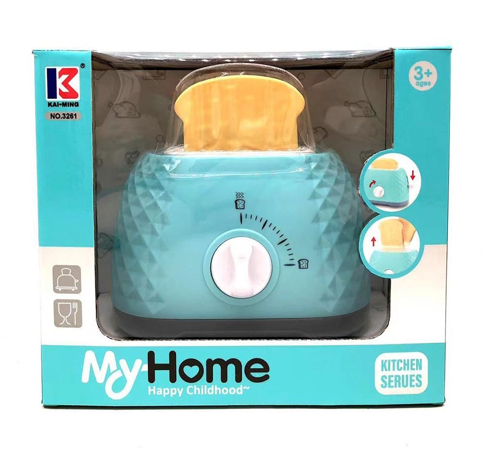 Toster z chlebem. Wyskakuje po wciśnięciu przycisku. Wymiary opakowania: 21 x 11 x 19 cm.