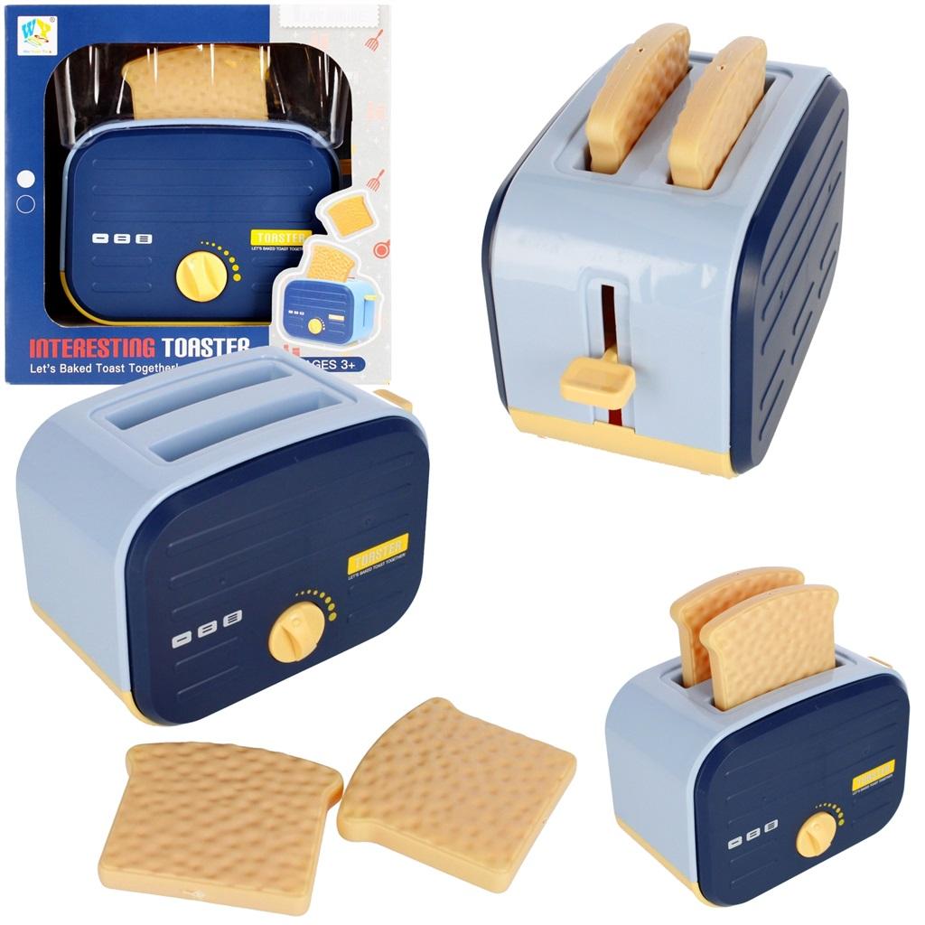 Toster do zabawy. Posiada efekty świetlne i dźwiękowe. Pokrętło do ustawiania czasu grzania. Wiernie odzwierciedla prawdziwy sprzęt AGD.