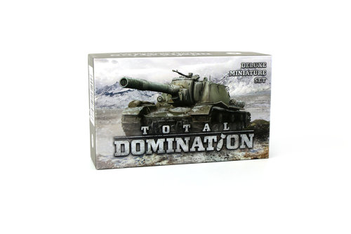 Total Domination: Zestaw miniatur Uwaga: To NIE jest samodzielna gra! Zawartość pudełka: 76 platikowych miniatur, w tym: 40 miniatur czołgów, 20 miniatur okrętów, 10 miniatur samolotów, 6 plastikowych znaczników ruchu oporu.