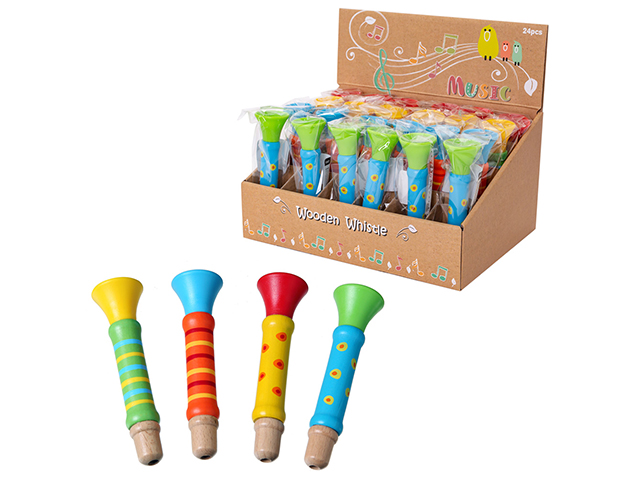 Pięknie pomalowana drewniana trąbka z dźwiękiem, do kreatywnego i przyjemnego poznawania świata muzyki!