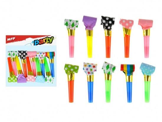 Trąbki papierowe w różnych wzorach i kolorach, zestaw 10 szt. Zapakowane w woreczek z eurozawieszką. Produkt jest nieszkodliwy dla zdrowia. Długość trąbki: 23 cm Nieodpowiednie dla dzieci do 3 lat. Niebezpieczeństwo połknięcia małych części. Wymiar: 180mm x 100mm x 2mm (szer. x wys. x gł.)