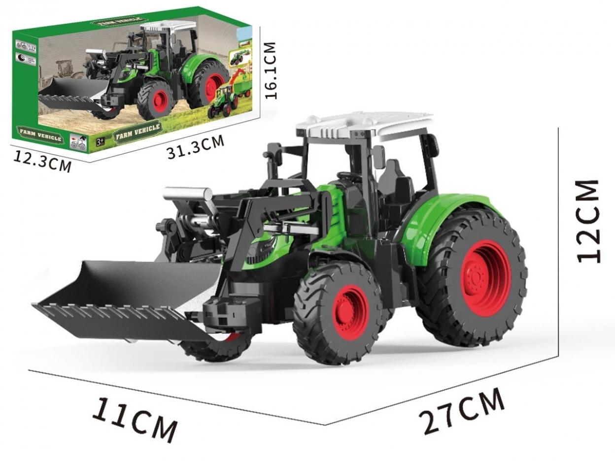 Duży traktor z ruchomym ładowaczem czołowym to idealna zabawka dla małych fanów maszyn rolniczych. Model wyposażony jest w podnoszoną i opuszczaną łyżkę, co pozwala na realistyczną zabawę w prace gospodarskie. Solidna konstrukcja oraz duże, terenowe koła sprawiają, że pojazd świetnie sprawdzi się zarówno w domu, jak i na zewnątrz. Zabawka rozwija wyobraźnię i zachęca do kreatywnego odgrywania scenek z życia farmy. Wymiary pojazdu: Długość: 27 cm; Szerokość: 11 cm; Wysokość: 12 cm. Wymiary opakowania: 31,3 x 12,3 x 16,1 cm. Odpowiedni dla dzieci 3+. Świetny pomysł na prezent dla małego miłośnika rolnictwa.