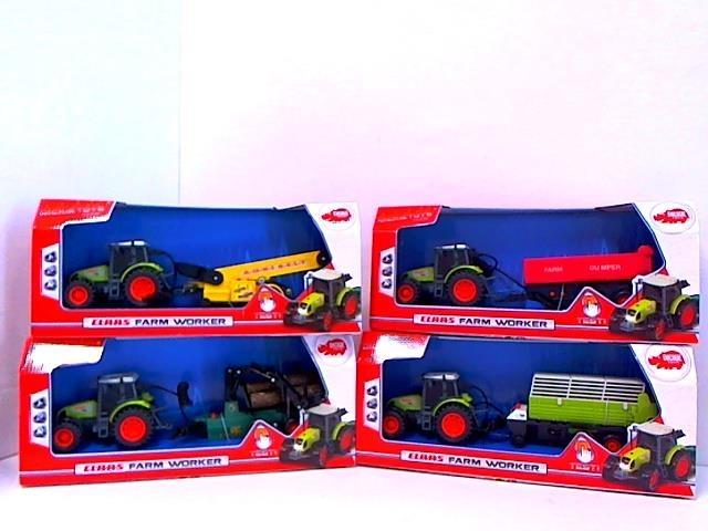 Traktor Claas 446 z przyczepą-wywrotką. Przyczepa posiada elektryczny podnośnik. Zabawka ze światłem i dźwiękiem. Wymaga 2 baterii AA -w zestawie. Dla dzieci w wieku od 3 lat.