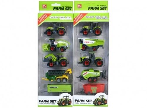 W zestawie znajduje się traktor metalowy oraz cztery przyczepy: naczepa do przewozu, koparka, kombajn oraz opryskiwacz. Przyczepy można wymieniać dowolnie w zależności od potrzeby. Zabawka wykonana z plastiku i metalu.