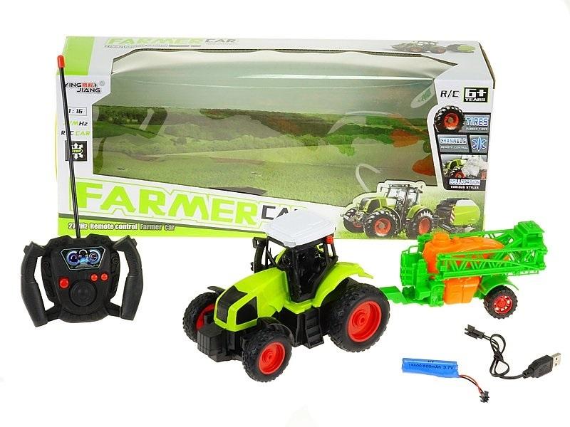 Traktor 1:16 na radio, z maszyną rolniczą, z ładowarką USB; 45x18x13cm