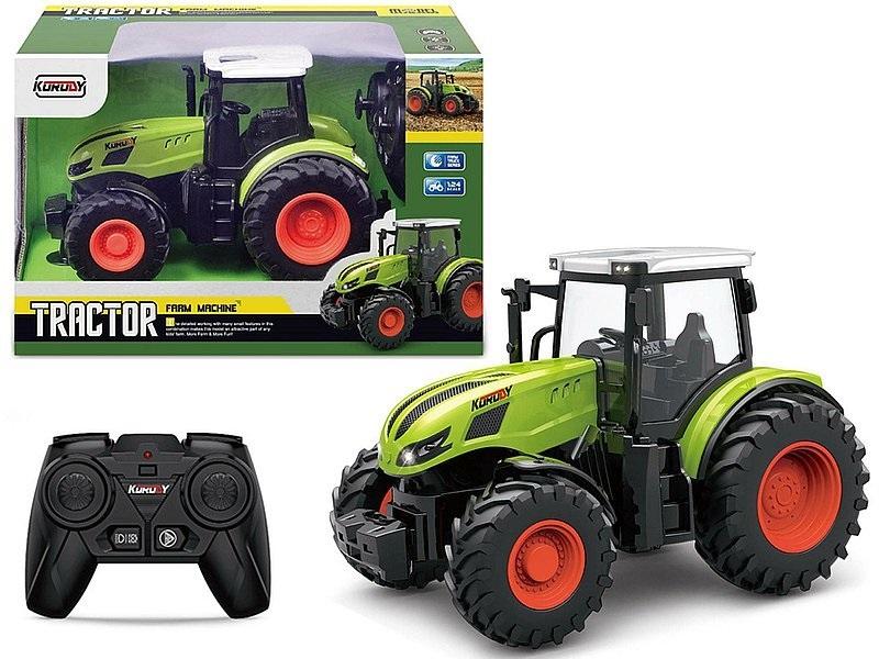 traktor 1:24 na radio, 6 funkcji, z kablem USB; 24x16x13cm, W/B