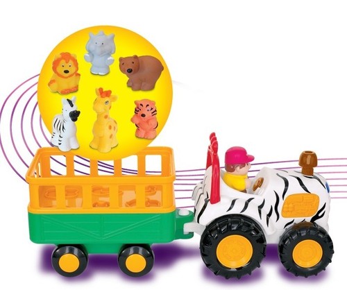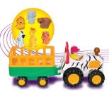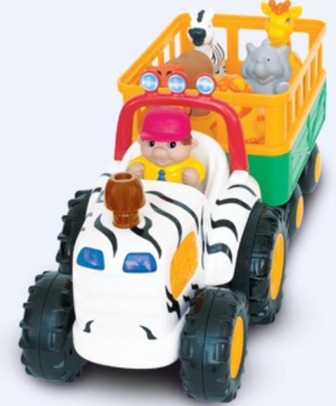 Traktor z przyczepą, na której znajduje się 6 zwierzątek, które nagrodzą Dzieci dźwiękami, gdy odgadną prawidłowy kształt i włożą zwierzątko w odpowiednie miejsce. Po naciśnięciu komina traktor przez chwilę samodzielnie jedzie wydając realistyczny odgłos silnika. Po naciśnięciu fotela kierowcy rozlega się dźwięk wesołej melodyjki. Gdy Dziecko naciśnie kierownicę można usłyszeć dźwięk klaksonu, a światła zaczną mrugać.