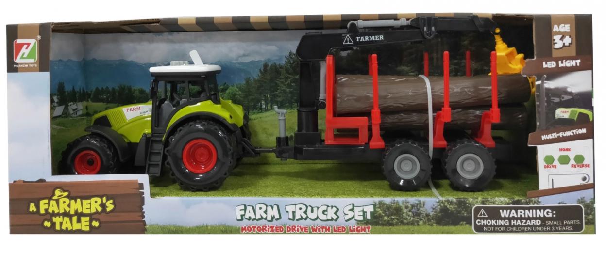 światło, dźwięk, traktor z przyczepą 36.5x8.5x9 cm