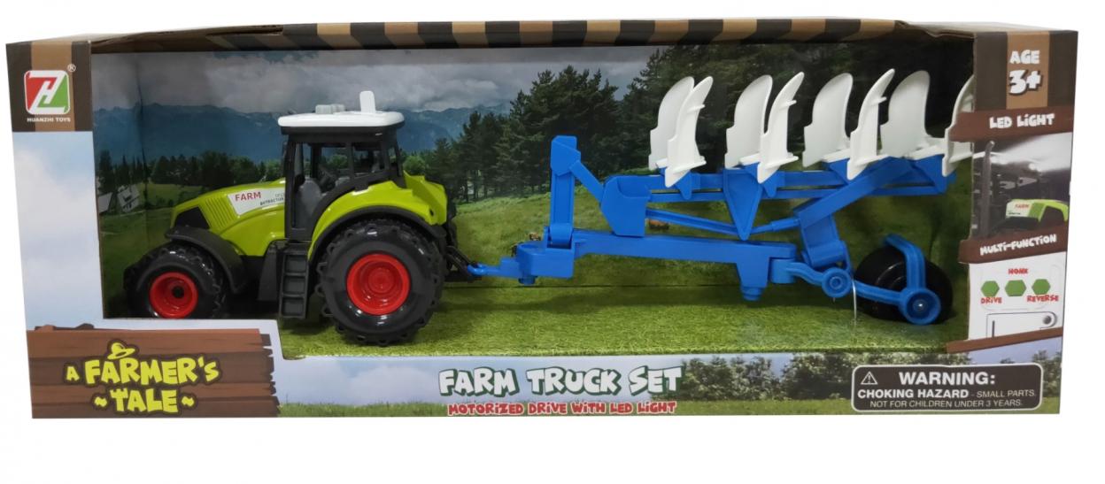 światło, dźwięk, traktor z przyczepą 36.5x8.5x9 cm