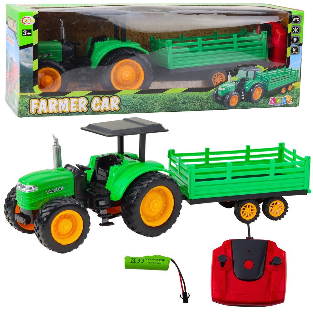 ZDALNIE STEROWANY TRAKTOR FARMERSKI Z PRZYCZEPĄ ZIELONY Traktor farmerski z przyczepą to doskonała zabawka dla każdego małego miłośnika rolnictwa i pojazdów mechanicznych. Wykonany z trwałych i bezpiecznych materiałów, charakteryzuje się solidną konstrukcją oraz estetycznym, realistycznym wyglądem, który przyciąga uwagę dzieci. Dzięki zdalnemu sterowaniu pojazd porusza się we wszystkich kierunkach - do przodu, do tyłu, w lewo i w prawo - co umożliwia pełną kontrolę nad jazdą oraz zapewnia dynamiczną i ekscytującą zabawę. Zabawkę wyposażono w efektowne oświetlenie LED, które nie tylko zwiększa atrakcyjność wizualną pojazdu, ale także pozwala bawić się nim w warunkach ograniczonego oświetlenia. Przyczepa, będąca integralną częścią zestawu, została zaprojektowana z myślą o przewożeniu różnego rodzaju drobnych przedmiotów, takich jak klocki, figurki czy elementy przyrodnicze - co dodatkowo rozwija kreatywność dziecka i umożliwia tworzenie własnych scenariuszy zabawy. SPECYFIKACJA: Wymiary całkowite (traktor + przyczepa): 48 x 16,5 x 16 cm Wymiary opakowania: 55 x 19 x 18cm Zasilanie traktora: akumulator 3.7V Li-Ion (w zestawie) Zasilanie pilota: 3 x bateria AA 1.5V (brak w zestawie) Pilot zdalnego sterowania: 2-kanałowy, ergonomiczny, z przyciskami kierunkowymi Zasięg pilota: do ok. 15-20 metrów Czas pracy na pełnym ładowaniu: ok. 20-30 minut Czas ładowania akumulatora: ok. 2 godziny Efekty: światła LED (przednie reflektory) Funkcje ruchu: jazda do przodu / do tyłu / skręt w prawo / w lewo Materiał wykonania: wysokiej jakości tworzywo sztuczne ABS Kolor: Zielony ZAWARTOŚĆ ZESTAWU: Zdalnie sterowany traktor Przyczepa Akumulator 3.7V Li Pilot zdalnego sterowania
