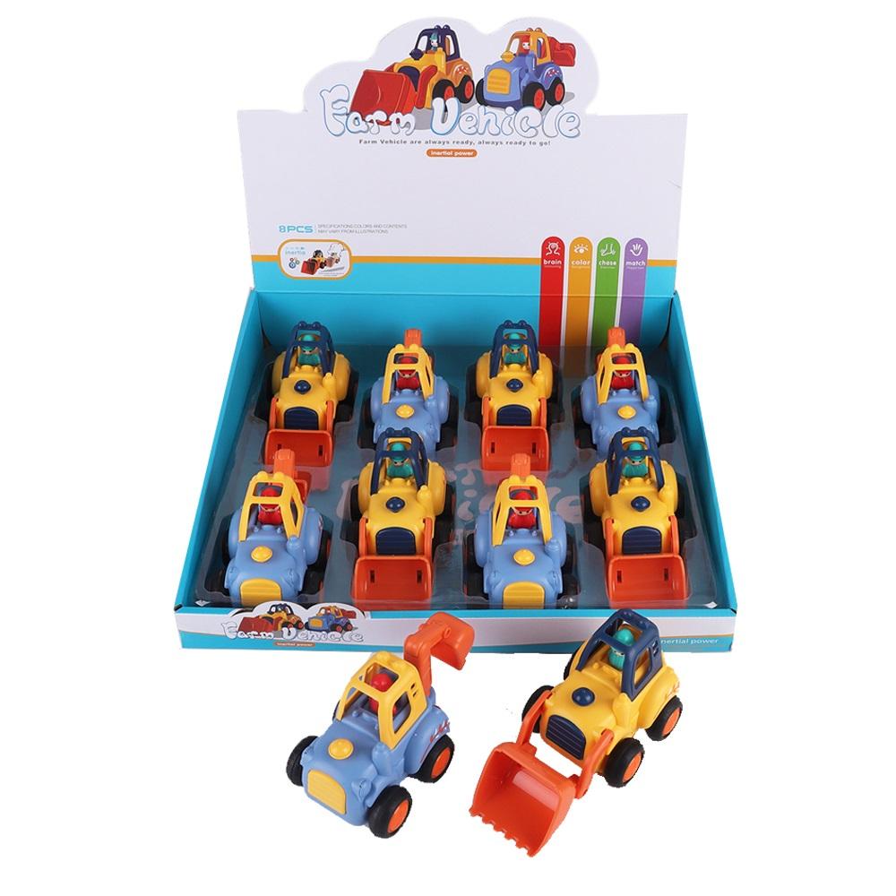 Traktorek plastikowy w dwóch wersjach: z koparką lub ładowarką. Występuje w dwóch kolorach. Działa na wolne koło. Wymiary traktorka: 14 x 7 x 8 cm.